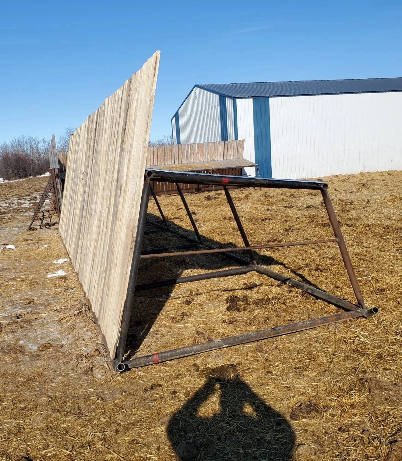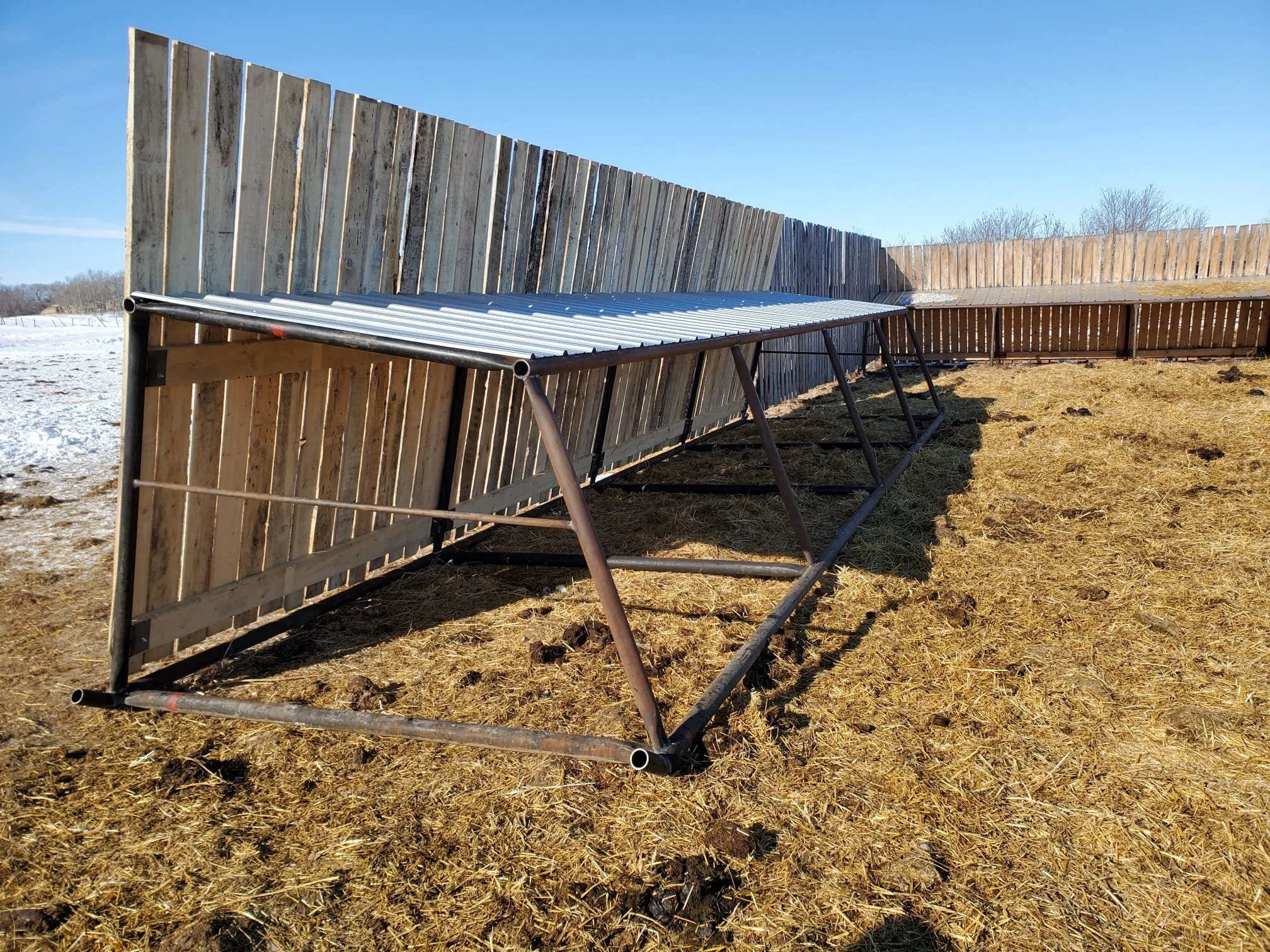 Wind protection and overhead cover for calves.